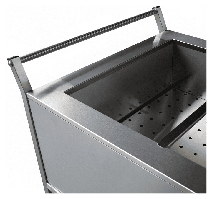 Передвижной мармит Finist предназначен для поддержания постоянной температуры горячих блюд на предприятиях общественного питания, банкетах и при выездном кейтеринге. Оборудование позволяет избежать остывания и последующего подогрева блюд, негативно сказывающихся на вкусовых качествах. Модель оснащена электромеханической панелью управления, плавной регулировкой температуры и 4 колесными опорами, 2 из которых с тормозным механизмом. Корпус выполнен из нержавеющей стали. Дополнительные характеристики: