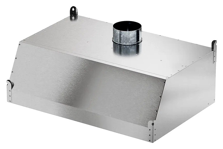 Вытяжной зонт Мебель Фронт ЗВН 03 используется на предприятиях общественного питания и торговли для установки над различным тепловым оборудованием и очистки воздуха от пара, гари и жира в процессе приготовления блюд. Модель оснащена встроенным нержавеющим жироуловителем и врезкой для оттка воздуха. Корпус выполнен из нержавеющей стали AISI 430, задняя стенка - из оцинкованной стали. Дополнительные характеристики: