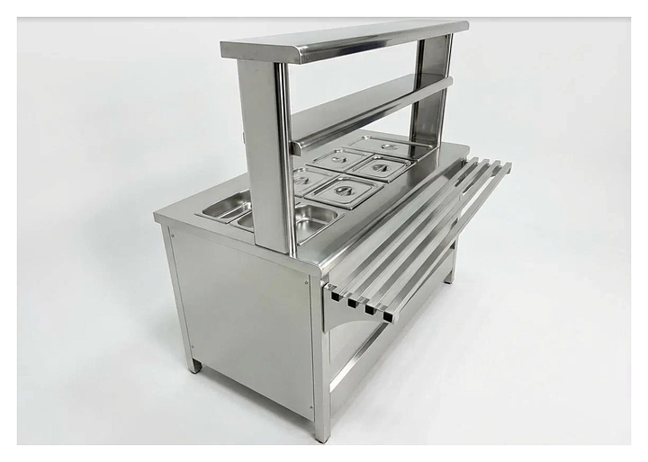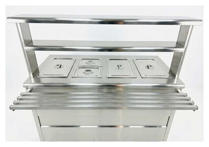 Мармит OBOD ЛР 4 используется для демонстрации и кратковременного хранения готовых вторых блюд на предприятиях общественного питания и торговли. Модель оснащена полкой с люминисцентной подсветкой и плавным регулятором температуры. Корпус выполнен из нержавеющей стали.