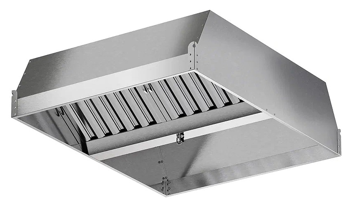 Вытяжной зонт Мебель Фронт ЗВН 04 используется на предприятиях общественного питания и торговли для установки над различным тепловым оборудованием и очистки воздуха от пара, гари и жира в процессе приготовления блюд. Модель оснащена встроенным нержавеющим жироуловителем и врезкой для оттка воздуха. Корпус выполнен из нержавеющей стали AISI 430. Дополнительные характеристики: