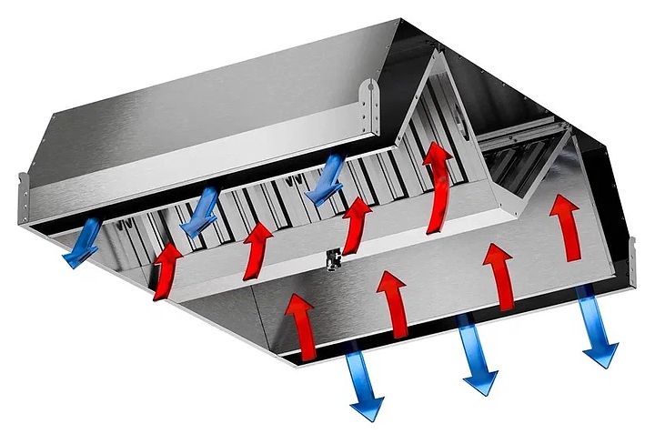 Приточно-вытяжной зонт Мебель Фронт ЗВНП 04 используется на предприятиях общественного питания и торговли для установки над различным тепловым оборудованием и очистки воздуха от пара, гари и жира в процессе приготовления блюд. Модель оснащена встроенным нержавеющим жироуловителем, врезкой для оттка и 2 врезками для притока воздуха. Корпус выполнен из нержавеющей стали AISI 430. Дополнительные характеристики: