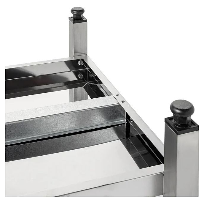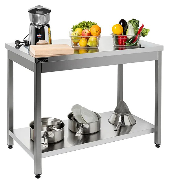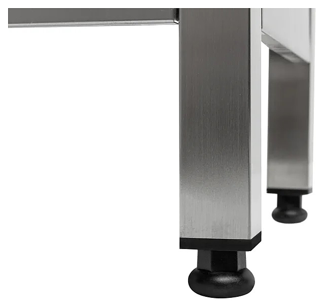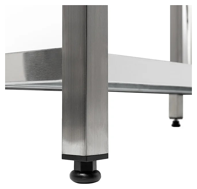 Столешница стола Koбор СП-40/110 используется на предприятиях общественного питания и торговли для разделывания и обработки пищевых продуктов, а также в качестве вспомогательной поверхности для кухонного оборудования. Каркас выполнен из квадратной трубы 40х40 мм нержавеющей стали, столешница и полка - из нержавеющей стали AISI 430, столешница укреплена листом ламинированной древесностружечной плиты с внутренней стороны.