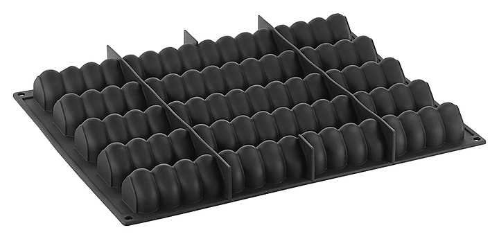 Форма для пирожных Pavoni PAVOFLEX PX4310 Нежный используется в пекарнях и кондитерских, на предприятиях пищевой промышленности и общественного питания для выпекания или заморозки различных десертов из жидкого теста, мусса, шоколада, желе, суфле или мороженого. Модель позволяет получить продукт в объемном виде. Изделие выполнено из силикона, который обладает высокой гибкостью, легко моется и способен выдерживать температуру от -40 до 280 °С. Подходит для совместного использования с формой для пирожных PX058. Дополнительные характеристики: