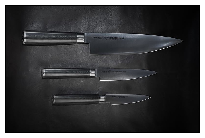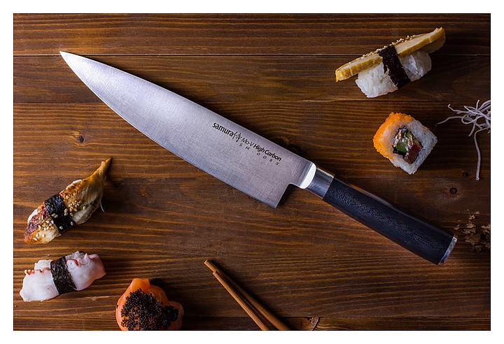 Компания Samura, имеющая производство в Японии и Китае, выпускает кухонные ножи для предприятий общепита и торговли, частных домов и квартир. Изделия являются симбиозом японской ножевой традиции и европейской надежности. |