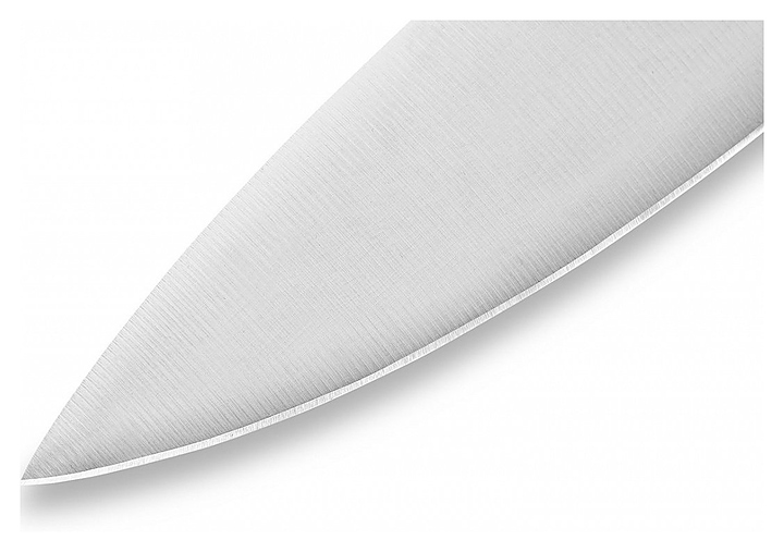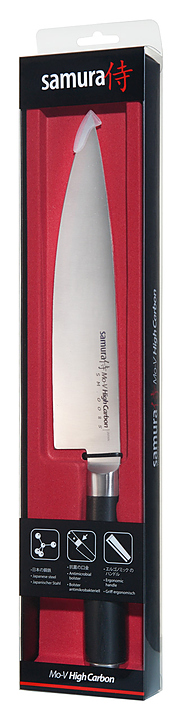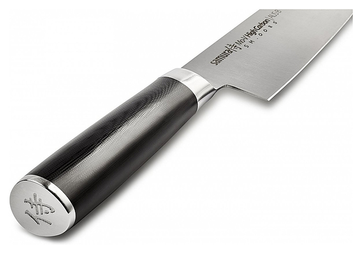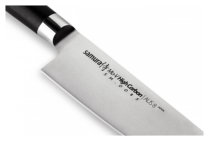 Японский кухонный нож Samura Mo-V SM-0085/K предназначен для нарезки различных продуктов на предприятиях общественного питания и торговли, в частных домах и квартирах. Прочный клинок не только успешно противостоит ржавлению, но и способен длительное время сохранять безупречность режущей кромки. Лезвие выполнено из коррозионно-стойкой однослойной стали AUS-8, ручка - из стеклоткани G-10. Особенности:
