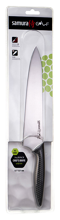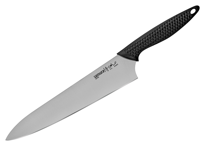 Нож для шефа Samura Golf SG-0085/Y предназначен для нарезки различных продуктов на предприятиях общественного питания и торговли, в частных домах и квартирах. Эргономичная рукоятка стилизована под ребристую поверхность мяча для игры в гольф. Лезвие выполнено из качественной японской специализированной однослойной стали AUS-8, ручка - из высококачественного полипропилена. Особенности: