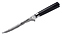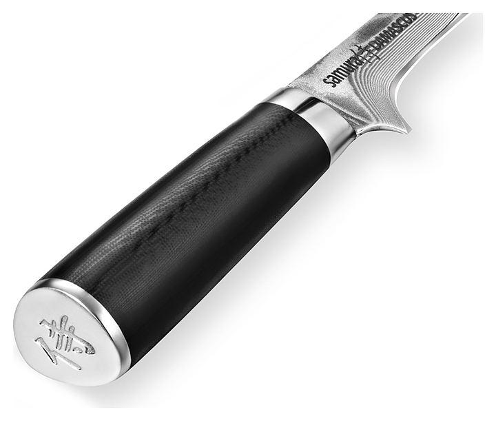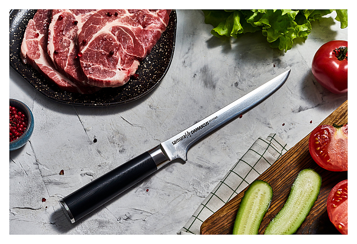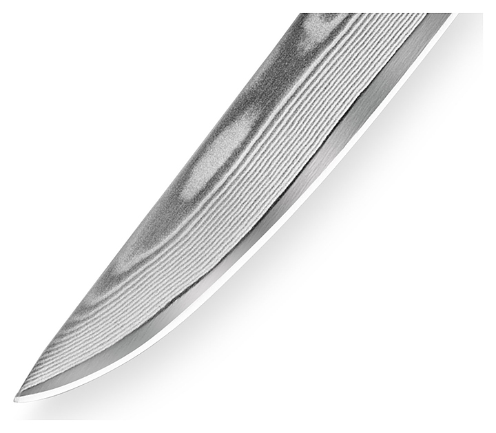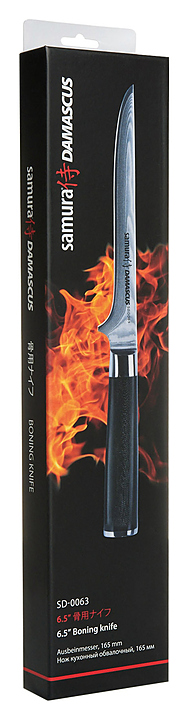 Обвалочный нож Samura Damascus SD-0063/Y предназначен для отделения мякоти от костей, хрящей и других подобных тканей на предприятиях общественного питания и торговли, в частных домах и квартирах. Центральная часть ножа выполнена из высококачественной дамасской стали V-Gold-10 и защищена 67 слоями обкладок из более мягких сталей - благодаря этому режущая кромка долго сохраняет безупречную остроту, а сердцевина надежно защищена от механических повреждений при работе. Ручка изготовлена из стеклопластика G-10. Особенности: