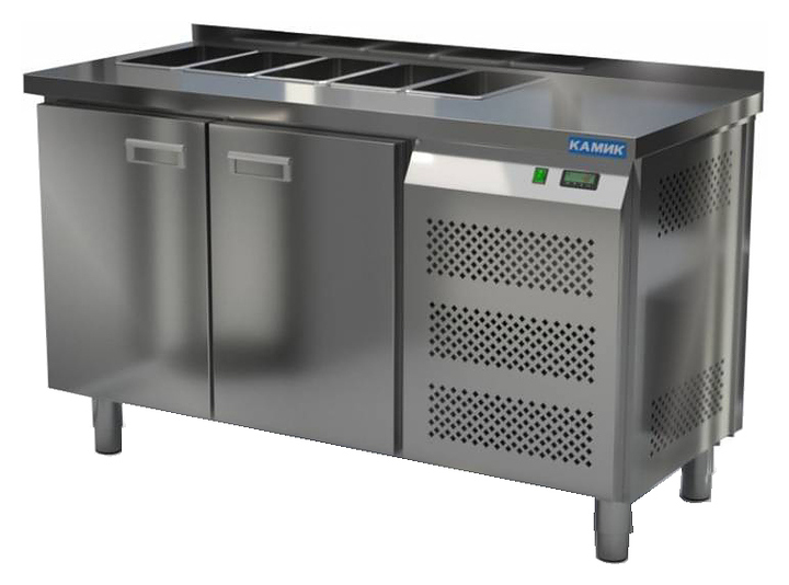 Холодильный стол КАМИК СОН-201476 используется на предприятиях общественного питания и торговли для охлаждения, демонстрации и кратковременного хранения ингредиентов для приготовления салатов, напитков и готовых блюд. Конструкция разделена на секции, каждая секция с дверью оборудована сетчатой полкой и парой направляющих. Корпус выполнен из нержавеющей стали AISI 430 толщиной 1 мм, столешница - из нержавеющей стали AISI 304 толщиной 1,5 мм. Особенности: