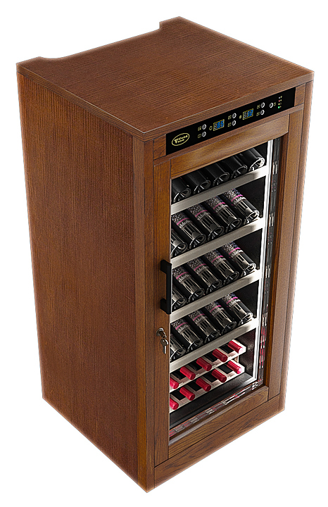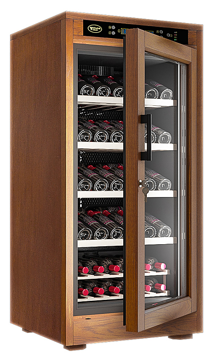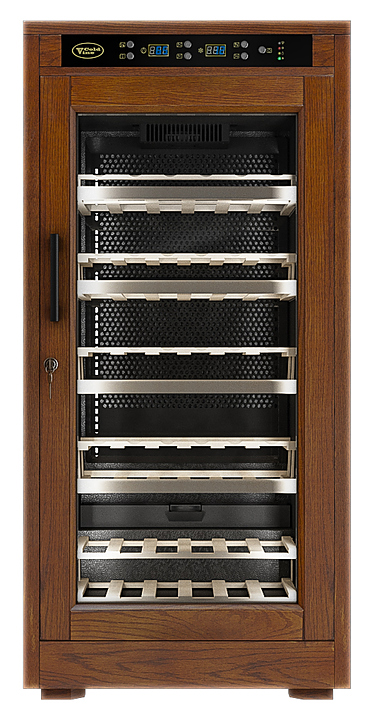 Винный шкаф Cold Vine C66-WN1 создает оптимальные условия для сохранения всех вкусовых свойств разливного вина. Модель оснащена цифровым контролем влажности, 5 деревянными полками и белой светодиодной подсветкой. Корпус классический черный и обит деревом цвета орех (шпон дуба). В комплект поставки входят полки: