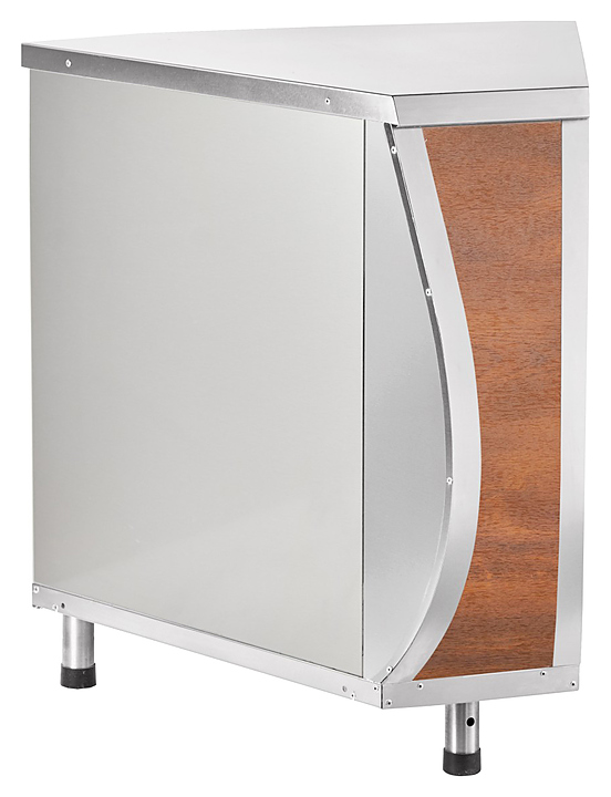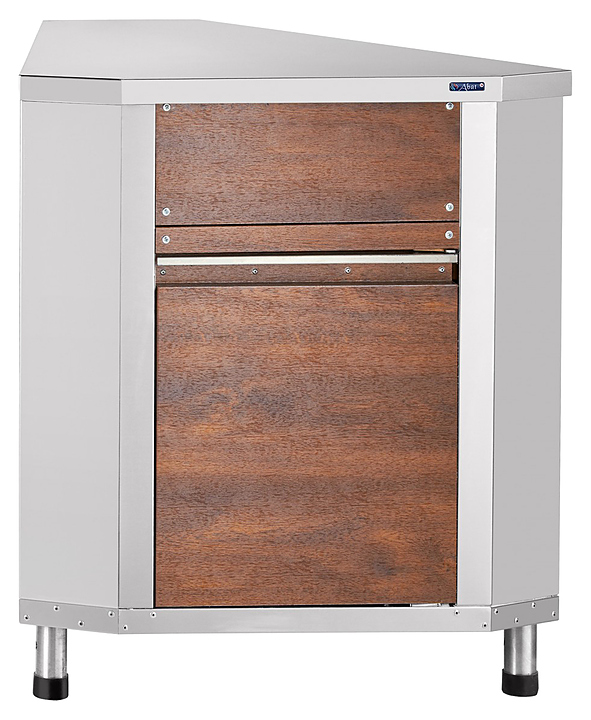 Поворотный модуль Abat МП-45Т-01 используется в составе линии раздачи Премьер для выкладки хлебобулочных, кондитерских изделий, посуды и столовых приборов на предприятиях общественного питания и торговли. Конструкция выполнена из металла, кашированного под дерево. Дополнительные характеристики: