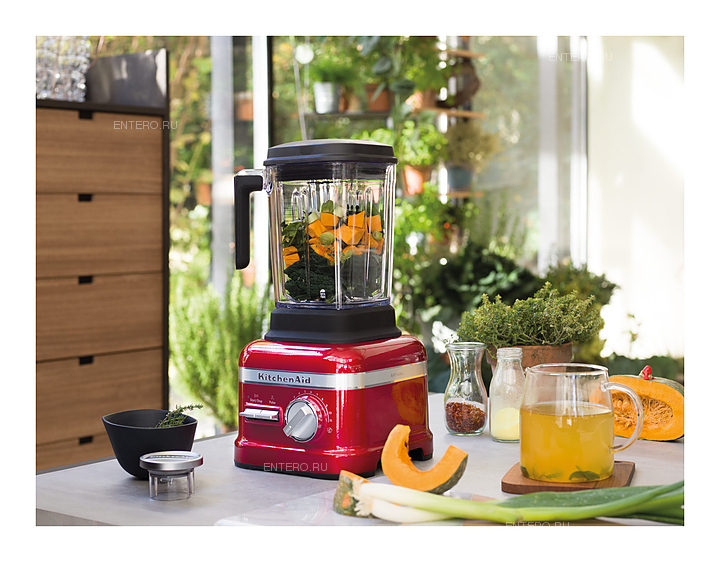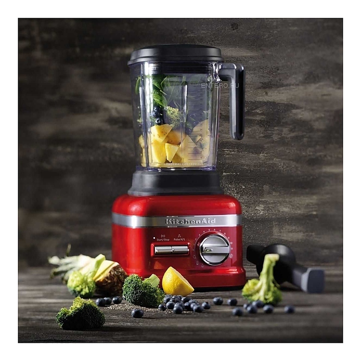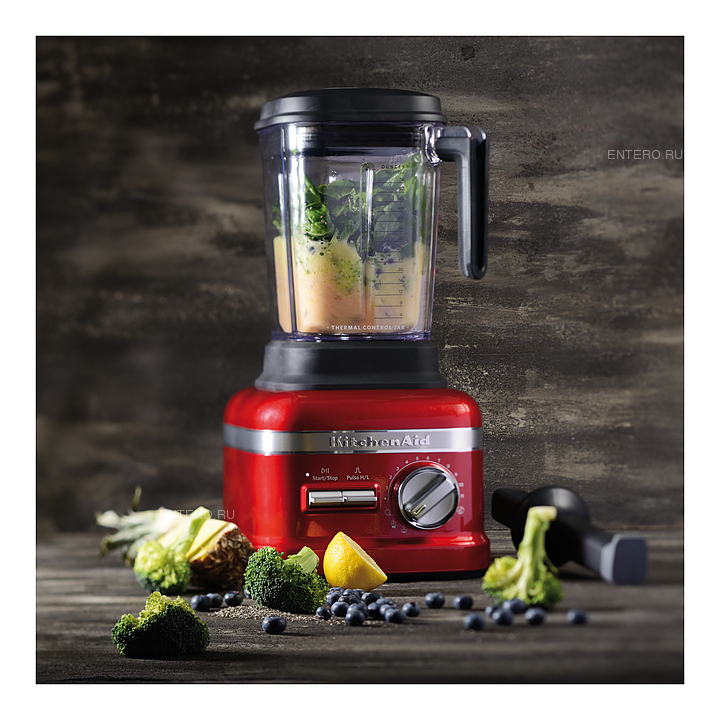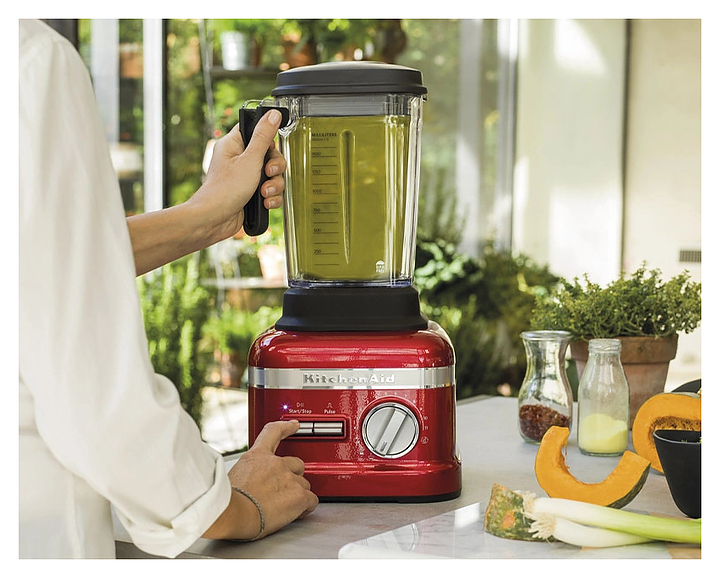 Стационарный блендер KitchenAid Artisan Power Plus 5KSB8270ECA предназначен для приготовления и подогрева супов, овощных и фруктовых пюре, смузи, муссов, кремов, пасты из орехов и других жидких и кремообразных блюд. Модель оснащена панелью управления с кнопочными и поворотным переключателями и мощным двигателем с плавным запуском. Основание блендера, ручка управления и переключатели выполнены из литой стали, нож - из закаленной нержавеющей стали толщиной 3 мм. В комплект поставки входят терморегулируемая чаша, вентилируемая крышка с мерным стаканом, съемная силиконовая подставка для чаши блендера, ассиметричный нож и уплотнитель с гибким ребром. Особенности: