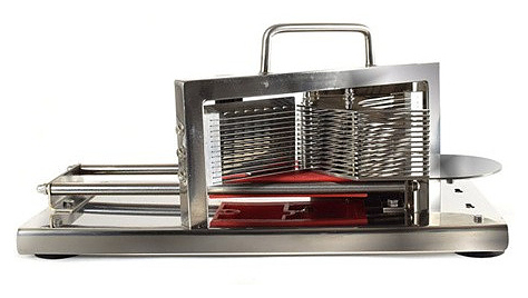 Слайсер FoodAtlas TC-1 предназначен для нарезки томатов разного размера на ровные ломтики на предприятиях общественного питания и торговли. Модель оснащена рамой подачи и подъемной рукояткой. Корпус и нож выполнены из нержавеющей стали 304. Особенности:
