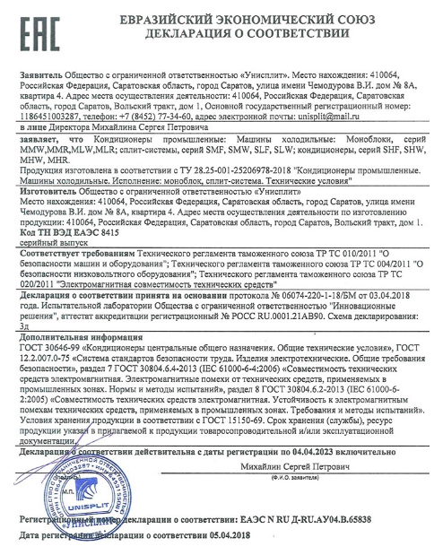 Российская компания UNISPLIT производит среднетемпературные и низкотемпературные сплит-системы и моноблоки, фреоны, трассы, запорные краны и прочие аксессуары для предприятий пищевой промышленности, общепита и торговли. Выпускаемые модели являются высококачественным оборудованием, разработанным с учетом современных технологий и нормативов.