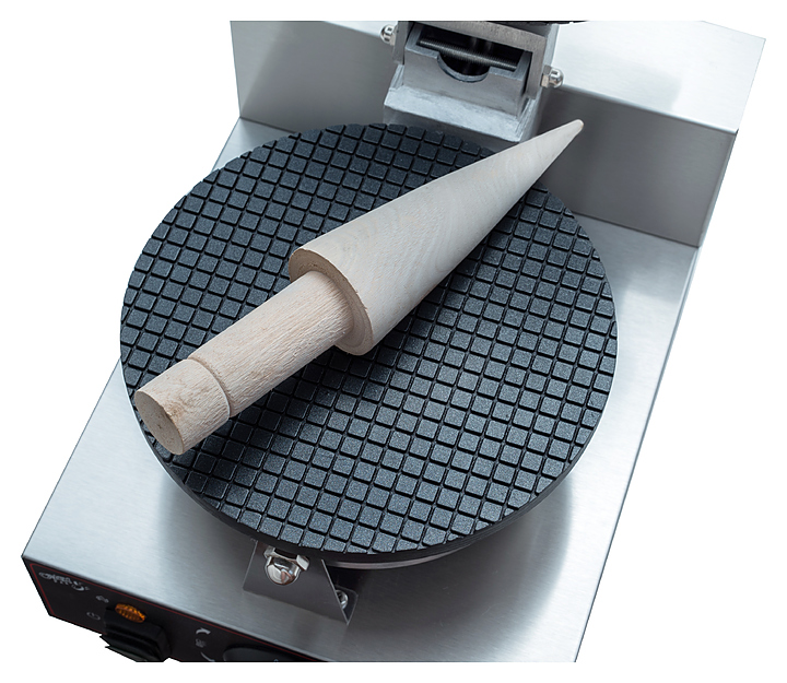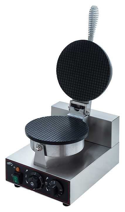 Вафельница Crazy Pan CP-WFM05 используется на предприятиях общественного питания и торговли для приготовления круглых вафель. Модель оснащена терморегулятором, 2 ТЭНами и звуковым таймером на 5 минут. Корпус выполнен из нержавеющей стали, рабочая поверхность - из чугуна с антипригарным покрытием. В комплект поставки входит конус для сворачивания вафли в рожок. Дополнительные характеристики: