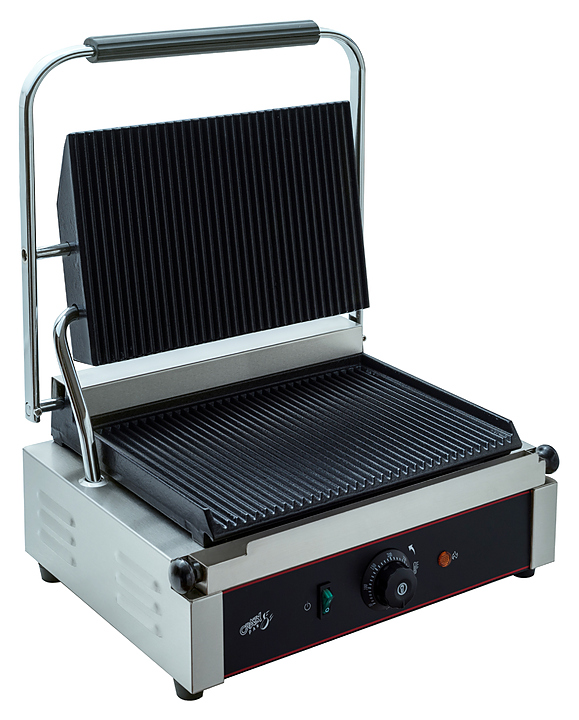 Прижимной гриль Crazy Pan CP-CG34R предназначен для жарки, быстрого приготовления и разогрева блюд из мяса, рыбы, птицы и полуфабрикатов на предприятиях общественного питания и торговли. Модель оснащена терморегулятором и 2 ТЭНами. Корпус выполнен из нержавеющей стали, рабочая поверхность имеет антипригарное покрытие. Дополнительные характеристики: