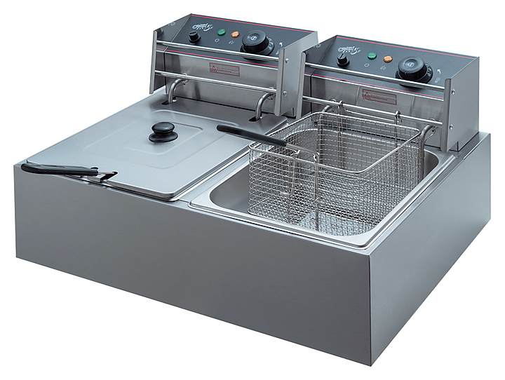 Фритюрница Crazy Pan CP-EF66L предназначена для приготовления различных продуктов в большом количестве масла на предприятиях общественного питания и торговли. Модель оснащена 2 блоками нагрева, 2 терморегуляторами и 2 съемными корзинами с ручками. Корпус выполнен из нержавеющей стали. Дополнительные характеристики: