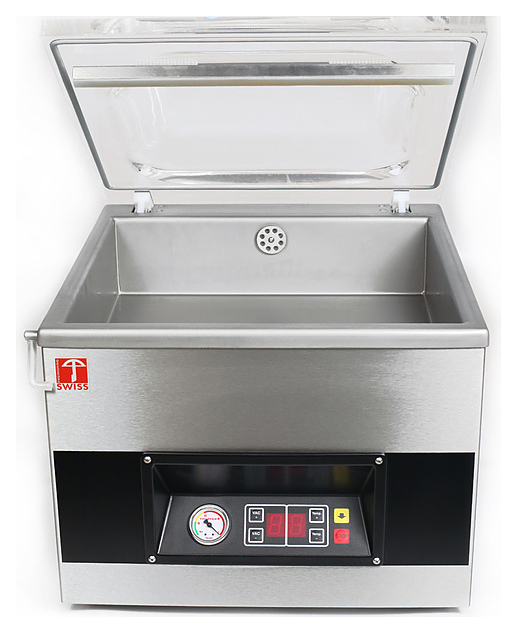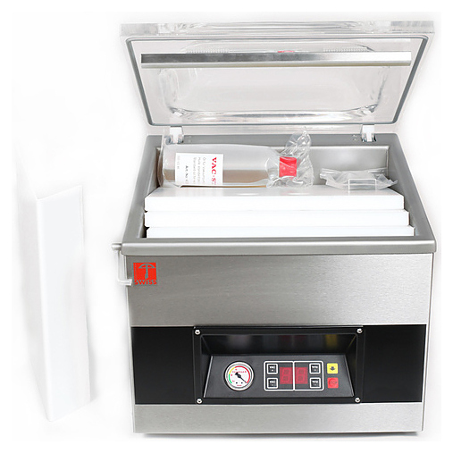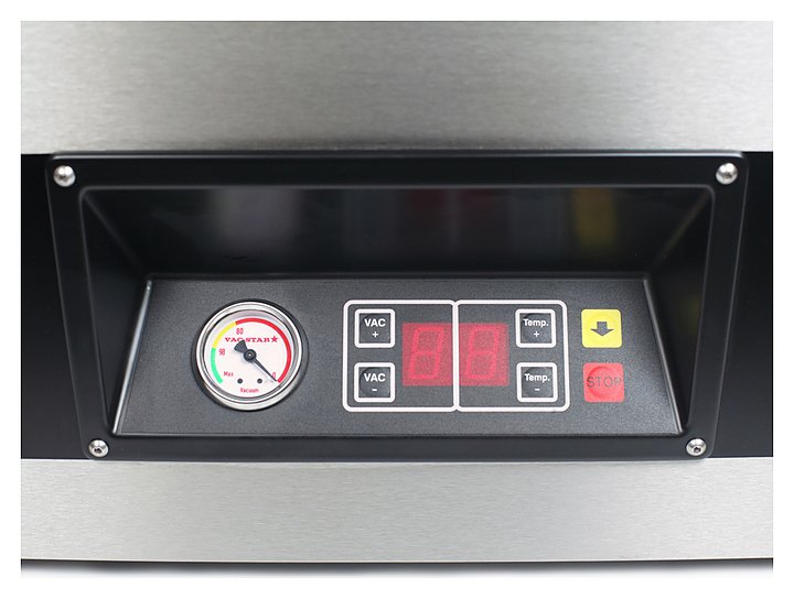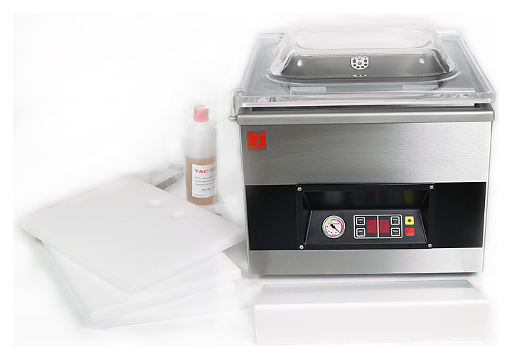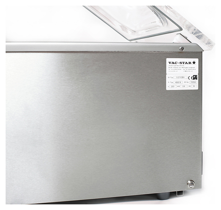 Вакуумный упаковщик VAC-STAR S-215 DBV используется на предприятиях общественного питания для упаковки продуктов питания, приготовленных по технологии Sous Vide в вакуумные пакеты. Такой метод упаковки позволяет длительное время сохранять свежесть продуктов. Корпус и камера полностью изготовлены из высококачественной нержавеющей стали, куполообразная крышка - из прозрачного акрилового пластика. В комплект поставки входят 3 армированные плиты (белый полиэтилен) и наклонная вставка для упаковки жидкостей. Особенности: