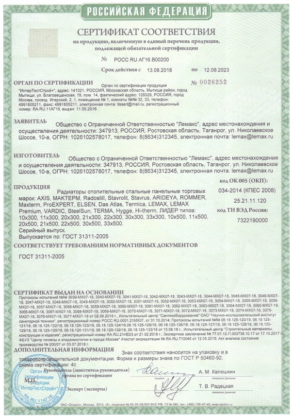 Радиатор Лемакс Compact 22 используется для отопления жилых помещений, административных и общественных зданий. Панели выполнены из российской стали толщиной 1,2 мм, конвекторы - из стального листа толщиной 0,4 мм. Прибор изготовлен на итальянском оборудовании Leas. В комплект поставки входят 2 монтажных кронштейна, монтажный комплект и паспорт. Особенности: