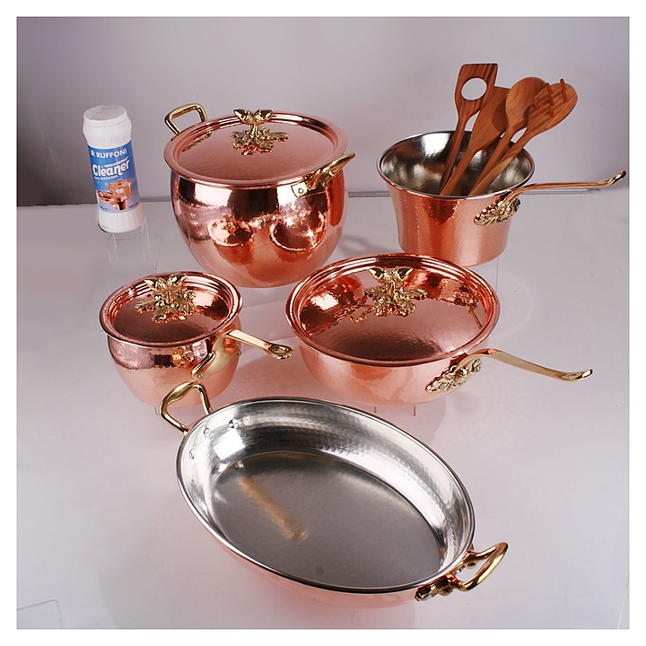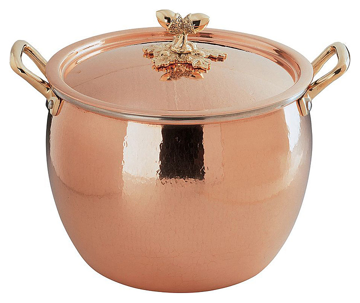 Кастрюля Ruffoni 3102-24B используется на предприятиях общественного питания для приготовления широкого спектра блюд. Модель оснащена изготовленными вручную фиксированными ручками и плотно закрывающейся крышкой, позволяющей сохранить тепло внутри кастрюли. Кастрюля подходит для использования со всеми видами плит, кроме индукционных. Изделие выполнено из листовой меди, обеспечивающей максимальную теплопроводность и контроль температуры, декорированные ручки - из бронзы, внутренняя поверхность покрыта нереакционноспособным лужным оловом. Особенности: