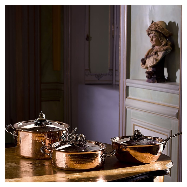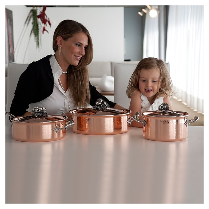 Кастрюля Ruffoni CR16 используется на предприятиях общественного питания для приготовления широкого спектра блюд. Модель оснащена жаропрочными ручками и крышкой с декорированной ручкой. Кастрюля подходит для использования со всеми видами плит, кроме индукционных. Изделие выполнено из листовой меди, обеспечивающей максимальную теплопроводность и контроль температуры, с сердчеником из алюминия, ручка на крышке - из посеребренной латуни, боковые ручки, заклепки и винты - из нержавеющей стали, внутренняя поверхность покрыта безопасной нержавеющей сталью. Особенности: