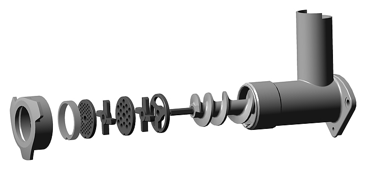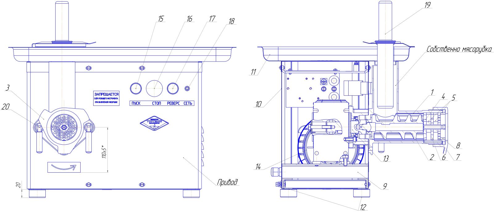 Мясорубка БЕЛТОРГМАШ МИМ-150 используется на предприятиях общественного питания, торговли, а также в производственных цехах, деятельность которых связана с выпуском гастрономических товаров, для измельчения мяса и рыбы на фарш, повторного измельчения котлетной массы и набивки колбас. Модель оснащена приводом, съемной чашей и функцией "Реверс", которая позволяет при наматывании жил освободить шнек без дополнительной разборки машин. Корпус выполнен из алюминия с облицовкой из нержавеющей стали. В комплект поставки входят нож подрезной, 2 двусторонних ножа, 2 решетки (№2 и №3), 2 насадки для колбас (14 и 24 мм) и толкатель. Особенности: