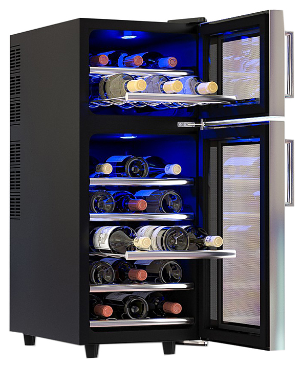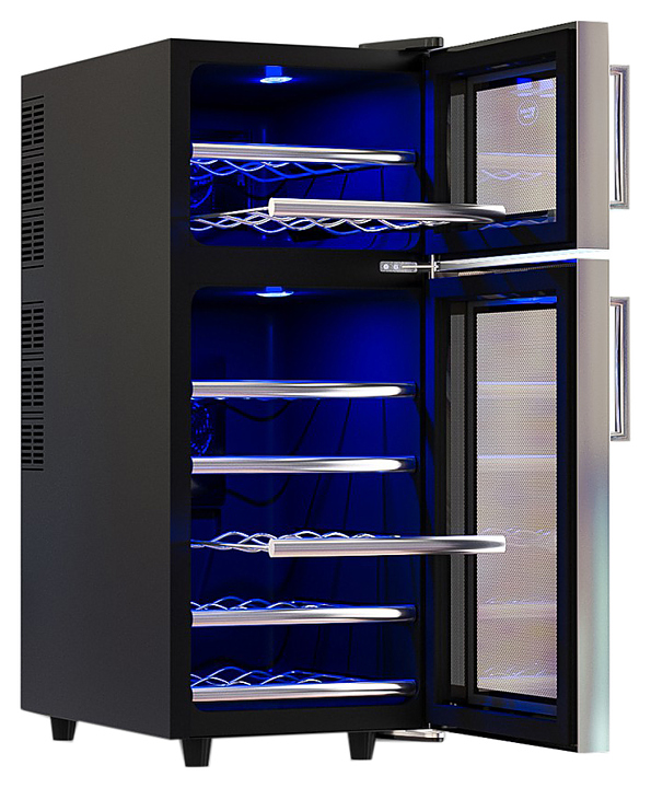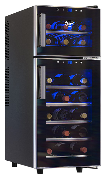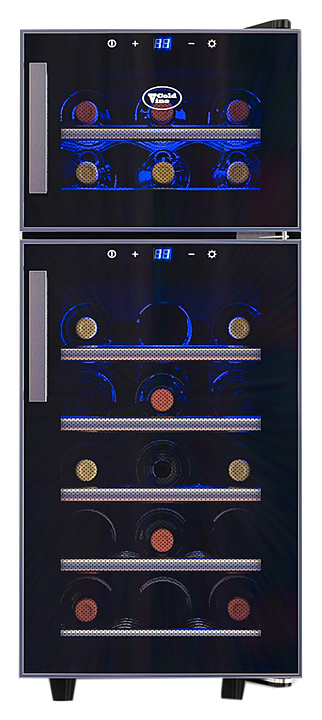 Винный шкаф Cold Vine C21-TBF2 создает оптимальные условия для сохранения всех вкусовых свойств разливного вина. Модель оснащена встроенными вентиляторами для каждой зоны, 7 металлическими полками, голубой светодиодной подсветкой и регулируемыми ножками. Дверь выполнена в черной раме и тонкой стальной окантовке из двойного тонированного стекла с защитой от УФ-лучей. Особенности: