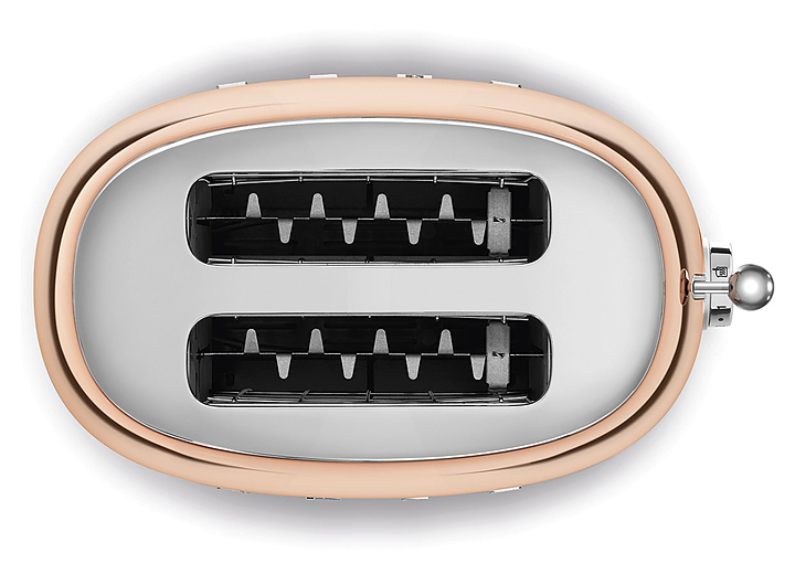 Тостер Smeg TSF01RGEU используется для обжаривания ломтиков тостового хлеба. С помощью дополнительно приобретаемых держателей тостер также можно применять для подогрева булочек или сэндвичей. Прибор отличается уникальным дизайном благодаря исполнению в стиле 50-х годов. В комплект поставки входит съемный поддон из нержавеющей стали для крошек. Особенности: