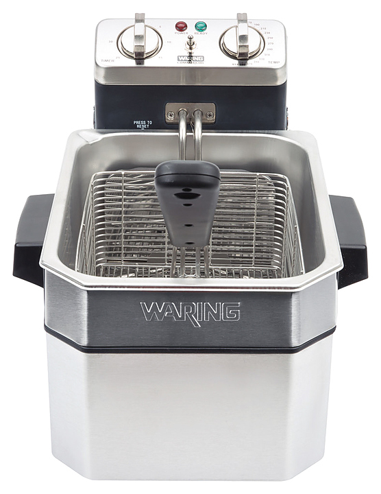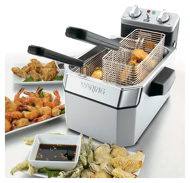 Фритюрница Waring WDF1000 предназначена для жарки мяса, птицы, рыбы и овощей в большом количестве масла на предприятиях общественного питания, торговли и в домашних условиях. Модель оснащена регулируемым термостатом, тумблером и "холодной" зоной, что позволяет маслу оставаться дольше чистым. Корпус, ванна и нагревательный элемент выполнены из нержавеющей стали, корзины со съемными ручками - из проволочной сетки из нержавеющей стали. В комплект поставки входят корзина (5 л), 2 корзины (2,5 л) и крышка. Особенности: