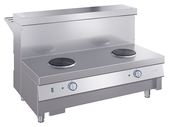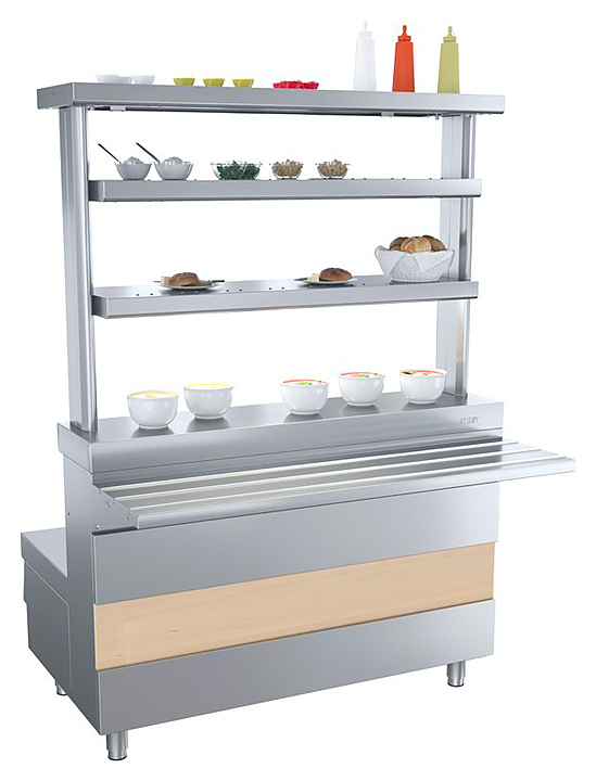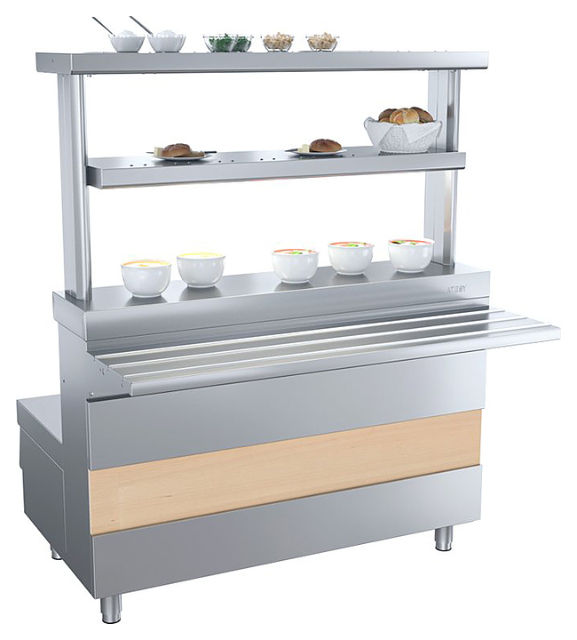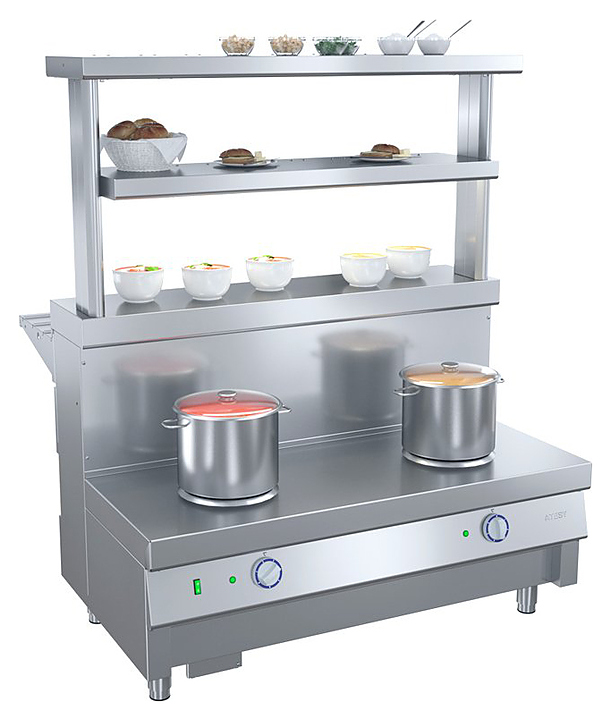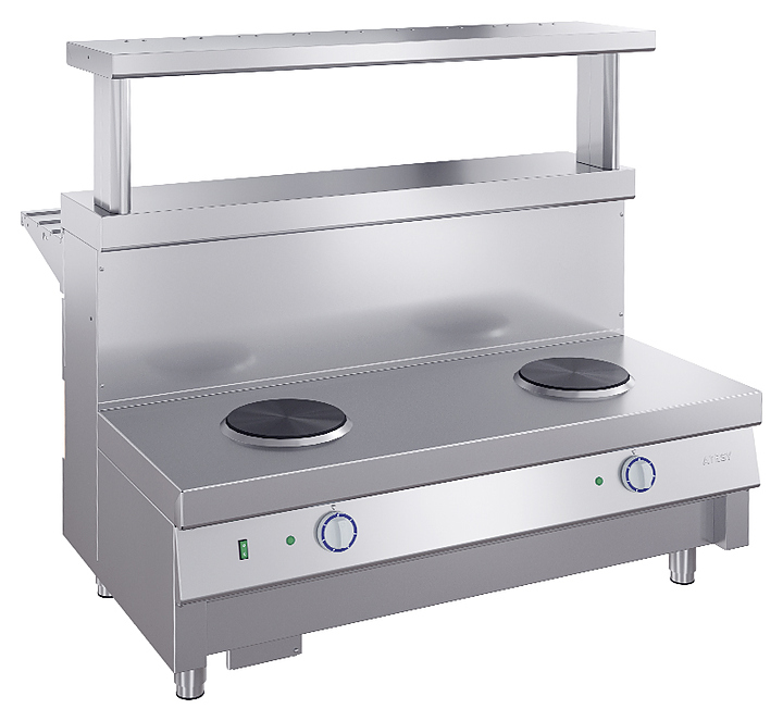 Мармит ATESY Ривьера М1-2.1120-02-О используется в составе линии раздачи Ривьера на предприятиях общественного питания и торговли для поддержания в горячем состоянии наплитной посуды с первыми блюдами. Модель оснащена 2 круглыми конфорками и 2 6-позиционными пакетными переключателями, позволяющими регулировать их температуру. Столешница выполнена из нержавеющей стали AISI 430, ножки - из нержавеющей стали и пластиковой опорной части. В комплект поставки входят направляющая для подносов и съемная декоративная панель цвета и текстуры D2413 Дуб. Особенности: