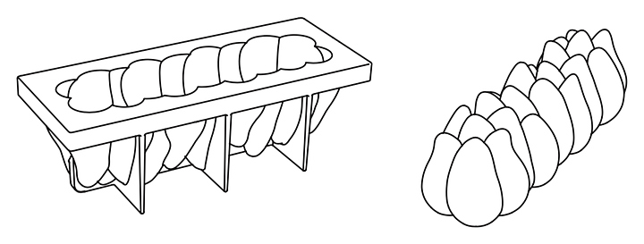 Форма для мороженого / суфле Pavoni KE046 Бревно используется в пекарнях и кондитерских, на предприятиях пищевой промышленности и общественного питания для выпекания или заморозки различных десертов из жидкого теста, мусса, шоколада, желе, суфле или мороженого. Модель позволяет получить продукт в объемном виде. Изделие выполнено из силикона, который обладает высокой гибкостью, легко моется и способен выдерживать температуру от -40 до 280 °С. Дополнительные характеристики: