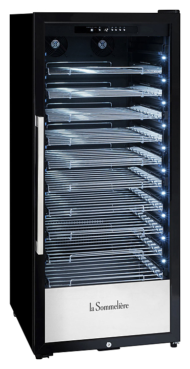Винный шкаф La Sommeliere PF110 серии Professional создает оптимальные условия для сохранения всех вкусовых свойств разливного вина в ресторанах, специализированных магазинах, подсобных складских помещениях, в частных домах или квартирах. Оборудование оснащено дверью со стеклом с защитой от ультрафиолетовых лучей и 10 выдвижными полками из металла. Особенности: