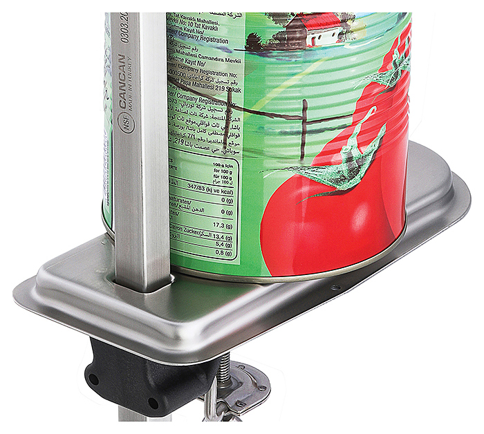 Ручная открывалка для консервов CanCan 0302.C используется на предприятиях общественного питания. Модель оснащена закаленным винтовым зубчатым колесом, лезвием, удаляющим острые края и металлическую стружку, регулируемым рабочим диапазоном высоты банки и фиксирующим валом. Профиль и лезвие выполнены из алюминия. Дополнительные характеристики: