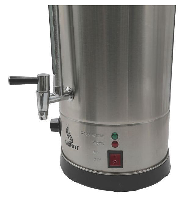 Кипятильник Airhot WBD-10 используется на предприятиях общественного питания и торговли, в офисах, отелях и т.д. для нагрева большого количества воды. Модель оснащена индикатором уровня воды, аварийным термостатом, индикатором нагрева и заменяемым закрытым ТЭНом. Корпус с двойными стенками выполнен из нержавеющей стали AISI 201/304. Дополнительные характеристики: