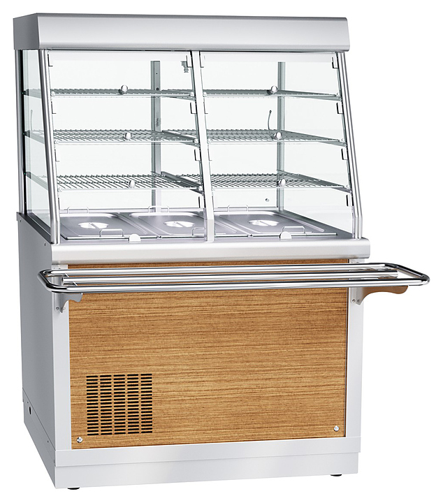 Холодильная витрина Abat ПВВ(Н)-70Х-С-НШ используется в составе линии раздачи HOT-LINE на предприятиях общественного питания и торговли для кратковременного хранения, демонстрации и раздачи холодных закусок, третьих блюд и охлажденных напитков потребителю. Модель оснащена 3 вместительными полками и охлаждаемой ванной с гастроемкостями. Корпус и панели выполнены из нержавеющей стали. В комплект поставки входит направляющая. Особенности: