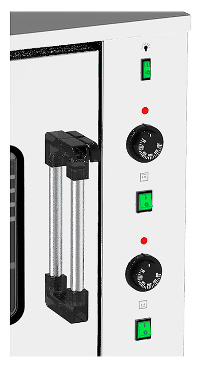 Жарочный шкаф Тулаторгтехника ШЖ-150-1с предназначен для выпечки хлебобулочных и кондитерских изделий и приготовления различных блюд на предприятиях общественного питания и торговли. Модель оснащена 2 нижними и 2 верхними нагревательными элементами. Рабочая и лицевые поверхности и камера выполнены из нержавеющей стали, боковые и задняя - из оцинкованной стали. В комплект поставки входят 2 противня GN 2/1 из черной стали глубиной 20 мм, рама-подставка и 4 регулируемые опоры. Особенности: