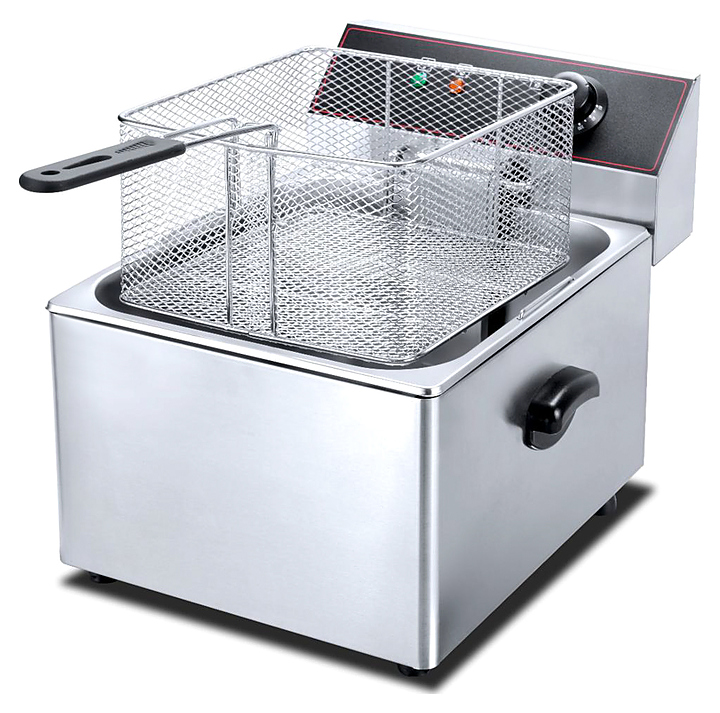 Фритюрница Hualian HEF-6L предназначена для приготовления различных блюд путем их обжарки в большом количестве масла на предприятиях пищевой промышленности, общественного питания и торговли. Модель оснащена механической панелью управления с терморегулятором и корзиной с ручкой и крючками для подвешивания на специальный выступ. Корпус и корзина выполнены из нержавеющей стали, ручки - из термостойкого пластика. Особенности: