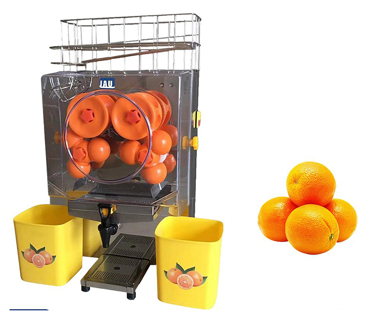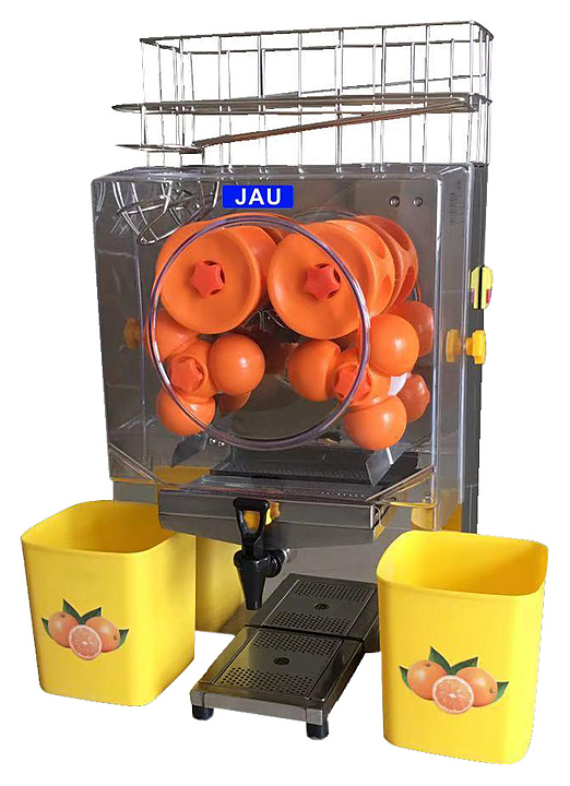 Соковыжималка JAU J-25 предназначена для приготовления натурального сока из различных видов цитрусовых на предприятиях общественного питания и торговли. Модель оснащена автоматической подачей, нарезкой фруктов и отжимом сока и рампой для ручной подачи с резервом на 8-10 фруктов. Механизм соковыжималки разработан таким образом, что в процессе отжима сок не соприкасается с кожурой плода, что защищает от попадания внешних загрязнений и предотвращает появление горечи в напитке. Корпус изготовлен из пластика. В комплект поставки входит кран для легкого управление слива готового сока. Дополнительные характеристики: