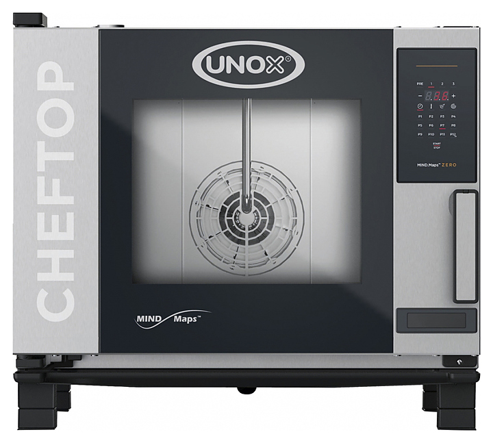 Пароконвектомат UNOX XEVC-0511-EZRM-LP серии CHEFTOP MIND.Maps™ ZERO предназначен для приготовления различных блюд, выпечки хлебобулочных и кондитерских изделий на предприятиях общественного питания и торговли, в пекарнях и кондитерских. Модель оснащена встроенной в дверь светодиодной LED-подсветкой и C-образными с зубчатыми нишами направляющими. Внутреннее открывающееся стекло облегчает чистку и обеспечивает максимальную гигиену. Камера с закругленными углами выполнена из нержавеющей стали AISI 304, направляющие - из профилированной стали, дверной замок - из высокопрочного самосмазывающегося технополимера, внутренний штифт дверной ручки - из углеродного волокна. Оборудование должно быть подключено к сети водоснабжения (вентиль 3/4″). В комплект поставки входят 4 пластиковых держателя, набор для подключения к водопроводной сети (шланг подачи воды, механический фильтр и невозвратный клапан 3/4) и набор «Starter Kit» (8 саморезов, гаечный ключ и наклейка). Листы для выпечки в комплект поставки не входят и приобретаются отдельно. Рекомендуется дополнительно приобрести водоумягчитель и фильтр-систему для очистки и смягчения воды. Подробнее о необходимости водоподготовки читайте здесь. Режимы выпечки: