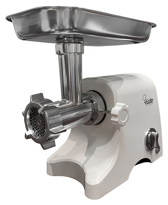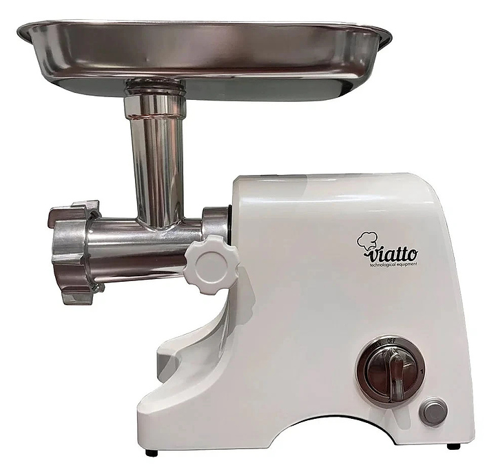 Мясорубка VIATTO VA-MG600W используется на предприятиях общественного питания и торговли для измельчения мяса, птицы и рыбы на фарш, а также повторного измельчения котлетной массы. Модель оснащена функцией реверса. Корпус выполнен из алюминия, режущий узел - нержавеющей стали. В комплект поставки входят односторонний нож, 3 решетки и 2 насадки для колбасок. Особенности: