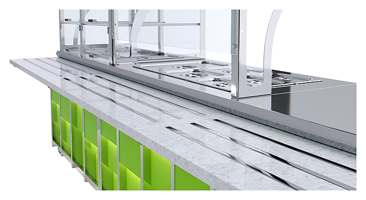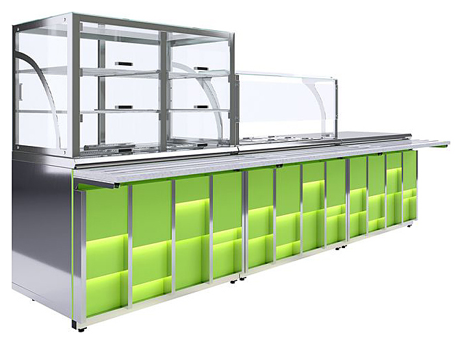 Паровой мармит Luxstahl МВП (С)-1200 Premium Neon используется в составе линии раздачи Neon на предприятиях общественного питания и торговли для поддержания в горячем состоянии гастроемкостей со вторыми блюдами, гарнирами и соусами. Модель оснащена 2 ПЭНами, осуществляющими нагрев воды. Каркас выполнен из нержавеющей стали AISI 430 толщиной 1 мм, навесной элемент - из нержавеющей стали AISI 430 толщиной 3 мм, верхняя полка и санитарная защита - из закаленного стекла толщиной 6 мм, фасад - из ЛДСП, стойки фасада - из ДСП и HPL-пластика Abet Laminati, направляющая для подносов - из профильной трубы 25х25 мм. В комплект поставки входят 1 гастроемкость GN 1/1 глубиной 150 мм, 2 гастроемкости GN 1/2 глубиной 150 мм и 3 гастроемкости GN 1/3 глубиной 150 мм. Особенности:
