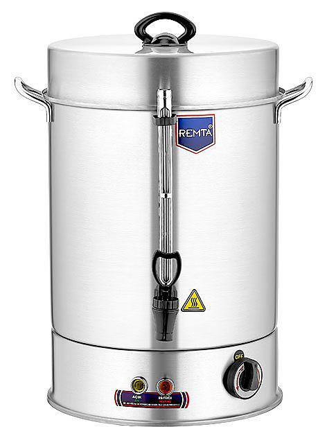 Кипятильник Remta R37 предназначен для приготовления и раздачи чая, непрерывного нагрева воды и последующего поддержания ее в горячем состоянии на предприятиях общественного питания и торговли. Модель оснащена автоматической системой контроля температуры, теплоизолированными ручками и пароотводным отверстием. Корпус выполнен из нержавеющей стали AISI 304, верхняя крышка - из пластика. В комплект поставки входит чайное ситечко. Дополнительные характеристики: