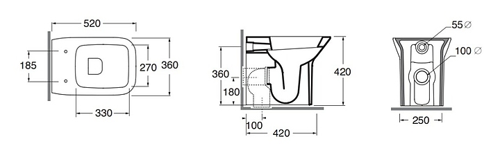 Унитаз приставной без бачка Azzurra PRUA PRVCTP000000BI