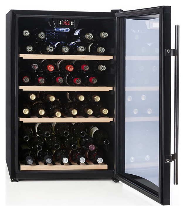 Винный шкаф Cavanova TW052T создает оптимальные условия для сохранения всех вкусовых свойств разливного вина в барах, ресторанах, специализированных магазинах, частных домах или квартирах. Модель оснащена внутренней светодиодной подсветкой. Дверь выполнена из тройного тонированного изогнутого стекла с защитой от УФ-лучей в рамке черного цвета, полки - из дерева. Особенности: