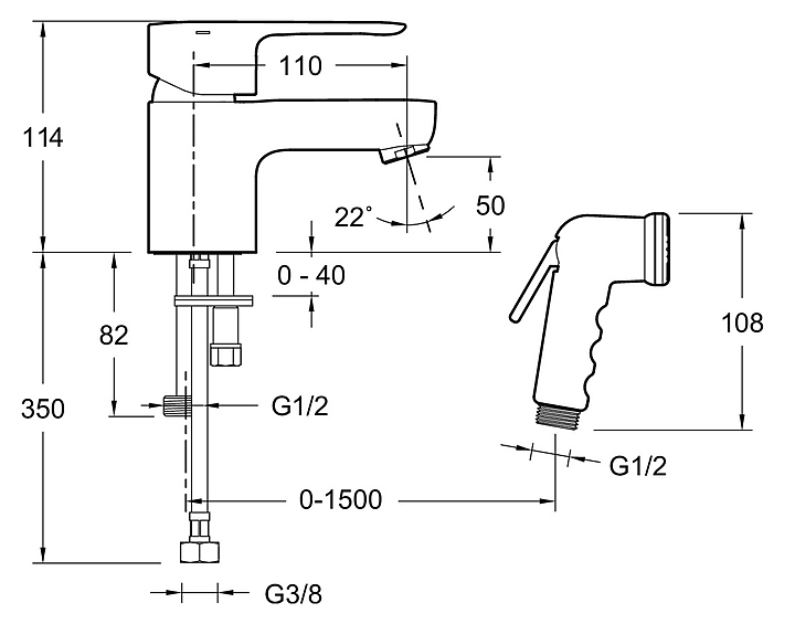 Смеситель однорычажный с гигиеническим душем Jacob Delafon JULY E16319-4-CP