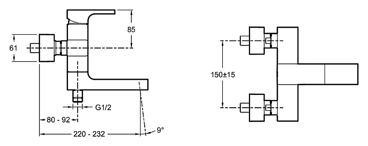 Смеситель для ванны и душа настенный Jacob Delafon STRAYT E45370-CP