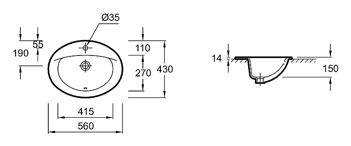 Раковина Jacob Delafon PATIO E4155-00 56x43 см, санфарфор