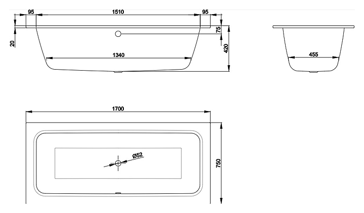 Ванна BETTE One 3312-000 PLUS AR 170x75 см, сталь