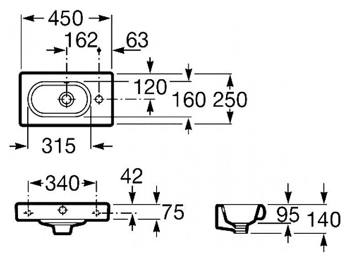 Раковина подвесная Roca Meridian 7327248000 45x25 см, керамика