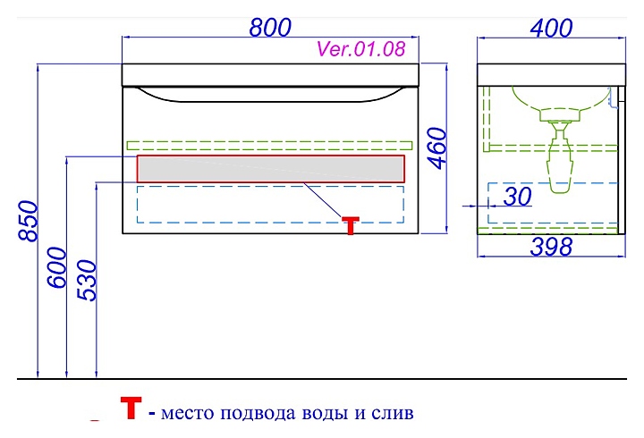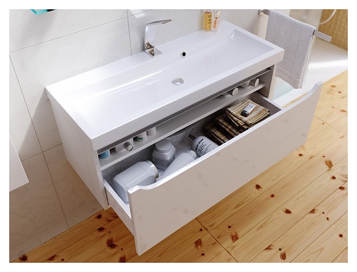 Тумба Aqwella Verona Ver.01.08/А в современном стиле дополнит интерьер любой ванной комнаты. Подвесная конструкция и отсутствие ножек создают иллюзию парения в воздухе и упрощают уборку. Модель оснащена выдвижным ящиком с системой плавного закрывания, а также скрытой полкой для хранения. Корпус покрыт пленкой со структурой дерева, которая характеризуется стойкостью к небольшим механическим повреждениям и простотой в уходе. Тумба используется вместе с раковиной Infinity 800. Для установки понадобится набор крепежей для монтажа на стену. Дополнительные характеристики: