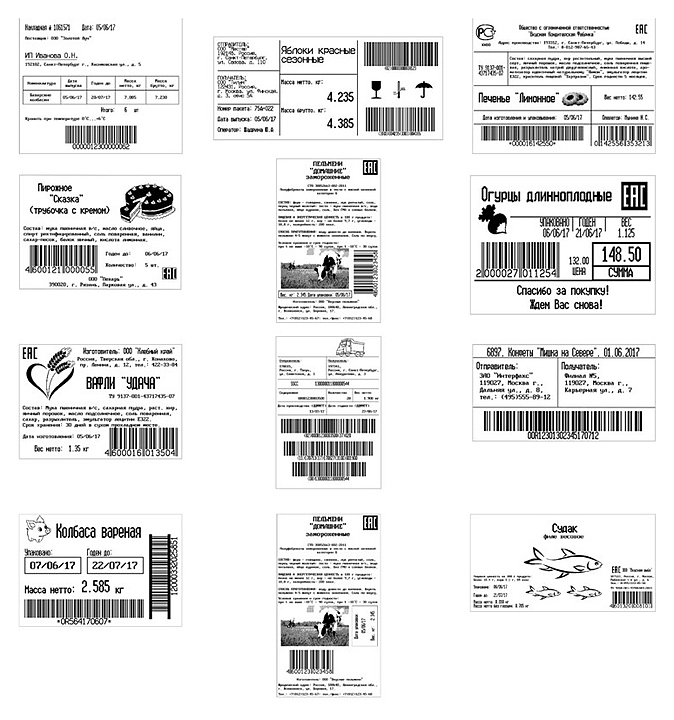 Размещение нескольких штрихкодов и рисунков на одной этикетке